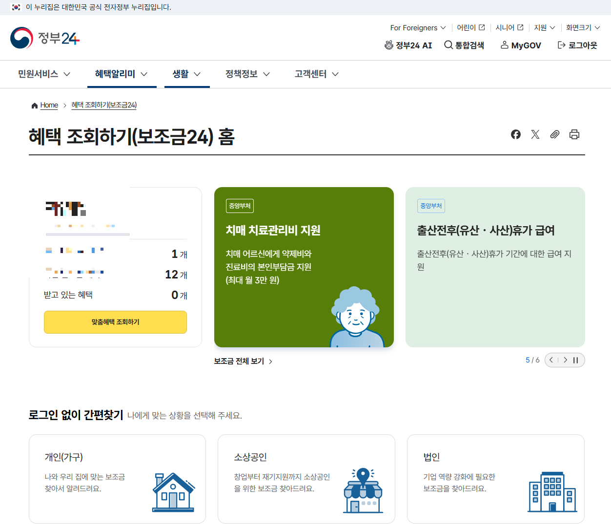 👉 내가 받을 수 있는 혜택을 확인할 수 있으니