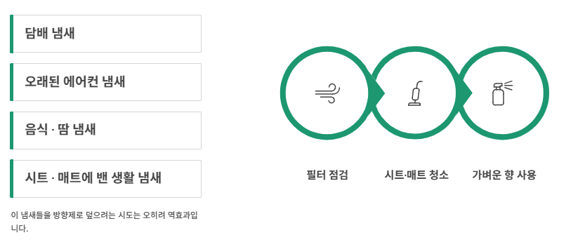 - 방향제보다 기본 냄새 제거가 먼저다