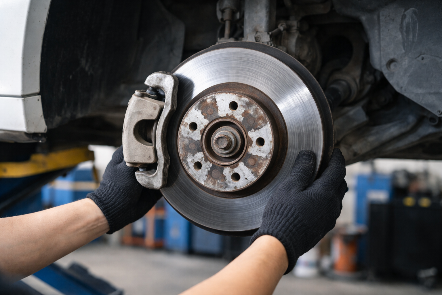 이건 꽤 중요한 포인트입니다.만약 평소 주행은 괜찮은데브레이크를 밟을 때만 핸들이 떨린다면,브레이크 쪽을 먼저 의심해볼 필요가 있습니다.대표적으로는브레이크 디스크(로터) 변형 가능성이 있습니다.브레이크 디스크가 고르게 회전하지 않으면 브레이크를 잡는 순간패드가 일정하지 않게 닿으면서 핸들 떨림이 생길 수 있습니다.