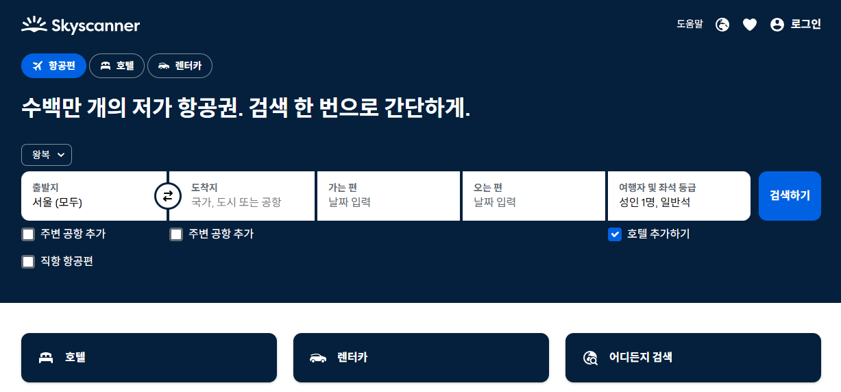 특히 스카이스캐너는 최저가 비교 기능이 강력합니다.